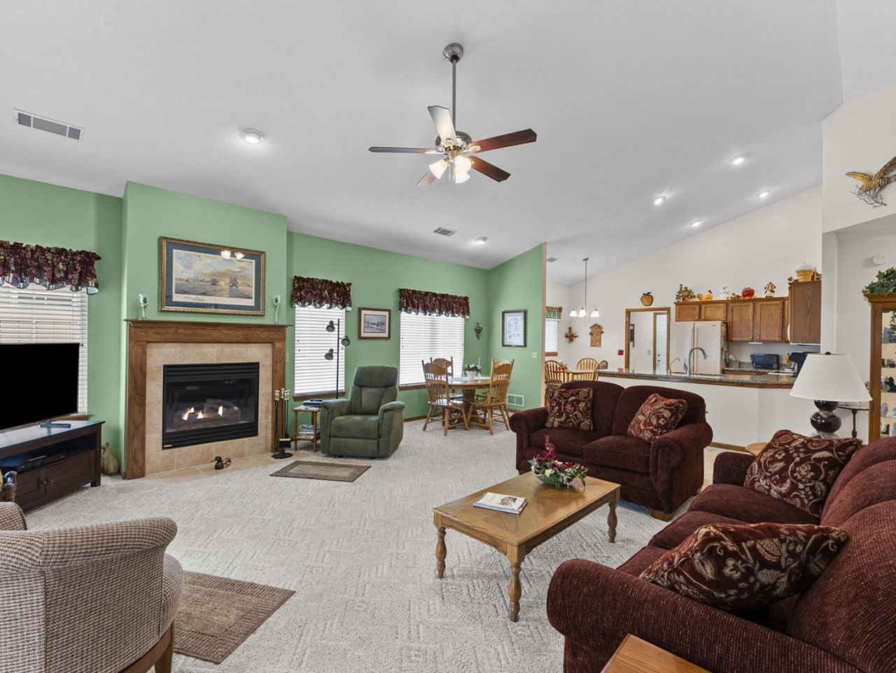 Zero entry free standing ranch condo. 2 bedrooms, 2 full bathrooms, 2 car garage, 1st floor laundry, vaulted ceilings, open floor plan. 4 season room, private patio. Gas fireplace, all appliances included. 1,603 sq ft, large master suite with walk-in closet, low-step shower and separate jacuzzi tub. Close to the Rustic Ridge golf course. Beautiful backyard with mature landscaping and trees. (You don't have to mow or shovel the HOA takes care of) Furnace & AC 2021. Roof replaced approximately 10 years ago.